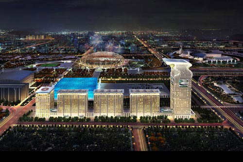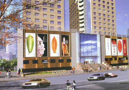 在鸟巢和水立方的西侧,一座具象的“龙”型建筑正以其独具东方神韵的宏伟身姿吸引着世界的目光。 这便是盘古大观奥林匹克核心区内唯一的城市综合体。该项目是北京盘古氏投资有限公司历时7年打造的大型地标性建筑。据盘古七星公馆营销总监韩乐介绍,盘古大观一共包括1幢超5A级写字楼、3幢国际公寓、1座盘古七星酒店以及1条长411米的世界第一商业长廊——龙廊,以及位于3幢国际公寓顶部、全球独一无二的12座空中四合院,共5种建筑形态。整个项目以191.65米的写字楼为龙首,盘古七星酒店为龙尾,由南向北依次延伸约600米。它面向奥运公园一字排开,全方位满足财富阶层缤纷多彩的华贵生活。整座建筑犹如一条通体雪白的巨龙,与水立方、鸟巢毗邻而居,交相辉映,成为北京的一张经典的“城市名片”。