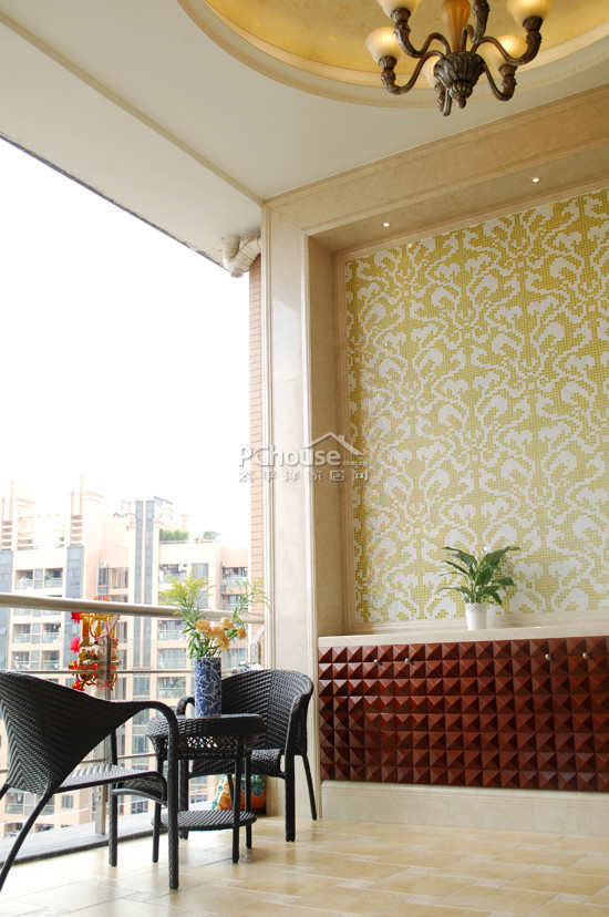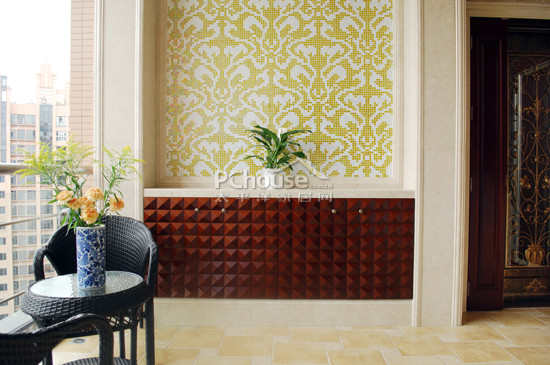 欧式花纹的马赛克的拼贴充分地演绎欧式的经典。吊灯的古铜色,蕴含了多少历史的沉淀,金色的液体壁纸,圆形的欧式天花,和古铜色尽情演绎唯美的简欧风情。