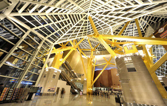 文化中心工程施工技术经专家鉴定为“达到国际先进水平”,其中结构难度最大的“黄金树”钢结构工程获评建设部钢结构工程最高奖“金钢奖”,是十分值得一看的建筑之一。
