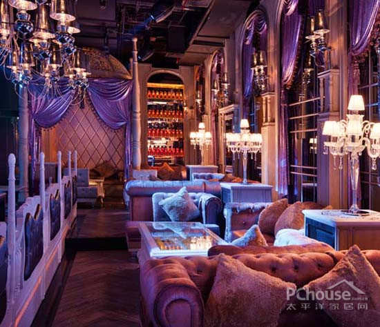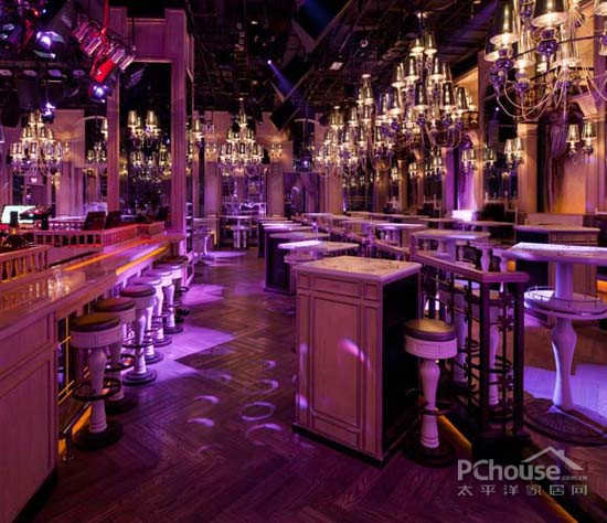 【太平洋家居网 设计频道】圆+方,本案大胆结合中式的“圆+方”与西式古典理念,结合迷幻的灯光把场所的气氛调配得松紧有秩。为添加更多的现代感设计师改变空间的比例关系和线条形态,以注入更神圣的韵味。
