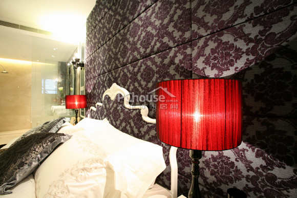 为了扩大空间,卧室与其卫生间的隔断都用了通透的玻璃,但在部分用了磨砂的处理,再加上隐隐的花线图案,即起到掩盖局部的不美观,又得到通透的美感。