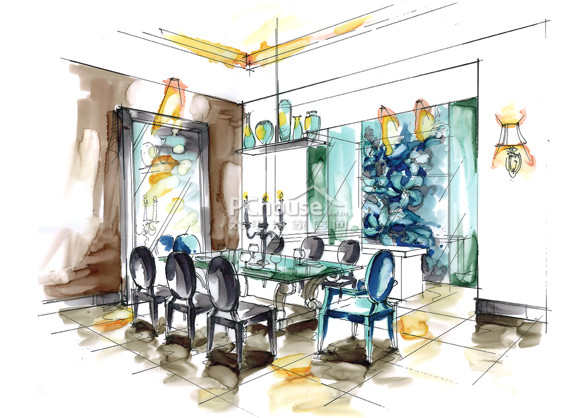 再往里面走便是餐厅、厨房,两者之间用玻璃和半通透的材料分隔,使厨房、餐厅和客厅三位一体,相映成趣。