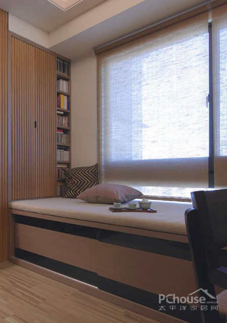 5、制作木质地台,作书房功能用;同时可以把地台做高,底部可以制作成榻榻米的形式,并可满足休息和储物两种功能,增减衣柜空间。