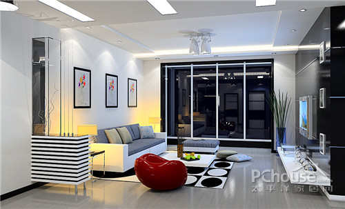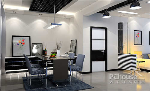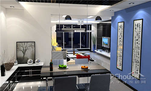 本案追求时尚与潮流,非常注重居室空间的布局与使用功能的结合。室内布置整体设两个字概括-简约。而简约中又不失奢华与品位,十分符合现代人渴求简单生活的心理。整体色彩的强烈对比使空间更丰富透亮。黑白蓝的色彩碰撞让整个空间具有很强的时尚韵味。在整个户型的设计中,尊崇原有的空间布局,在适当的改动下合理利用每一寸空间。