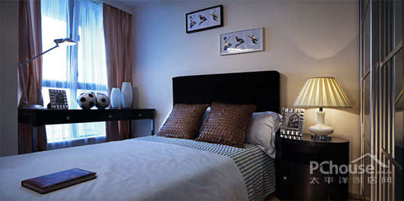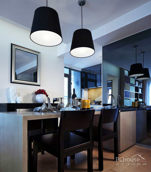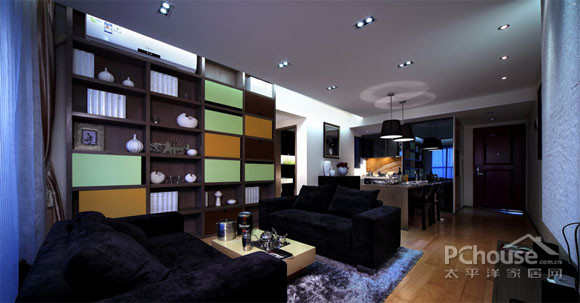 黑白灰的时尚,营造出的空间高贵中带着安静,有质感更显品位;干净利落的白色,纯洁中总是给人舒服的感觉,木色带着大自然的清新,有着浓浓的天然味,黑色的家私配以低调色彩的书柜背景,并不显得单调,反而很舒适,简单的设计风格,打造出一个简洁明朗,棱角分明的空间,并将舒适宜人的特色抒发得切实到位。