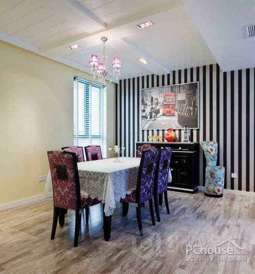 遐想中的家,永远是一道美丽的风景,它的色调因风格而丰富,它的造型因混搭而多变,墙上黑白的老照片,顶上怀旧的小吊顶,还有这些古朴的家具,每一组搭配都是细腻婉约的艺术品.房间的挑高在2750~2800mm之间,去掉280mm的中央空调高度,运用现代简约的十字型吊顶,以它交错的层次减少顶部的下压感,其工艺是用细木工板作为基层,喷上白色饰面漆。装饰墙面及背景墙的墙纸使用条纹式样,绝大部分墙纸的缺点是过于平面,但是这里统帅的设计师选择了色彩节奏的快速变化,用深浅黑白的效果达到视觉凹凸均匀的立体感,在视觉很富有立体感,其余墙体米黄色涂料的拉毛处理,拉毛后的墙体有点小小做旧的感觉,与室内中式怀旧的家具相得益彰。