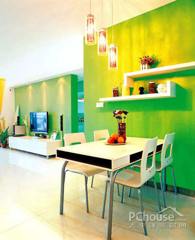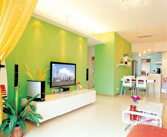 这是一套雅居结构房型,线条简约流畅,色彩对比强烈,给人一种要跳跃出来的感觉。苹果绿等高纯度色彩大量运用,大胆而灵活,不单是对简约风格的遵循,也是个性的展示。