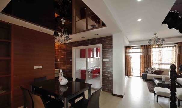 设计师将居室的整体风格定位为现代主义风格,主体色调以白色,简洁、大气且自然,富有浓重的现代生活气息。餐厅内的仿古砖装饰墙面,给整个餐厅空间注入了现代生活情趣的重要元素,使整个餐厅空间增添了抽象的艺术效果。客厅中白的世界,优雅、简洁、宁静,是洗尽铅华的清新和纯美。