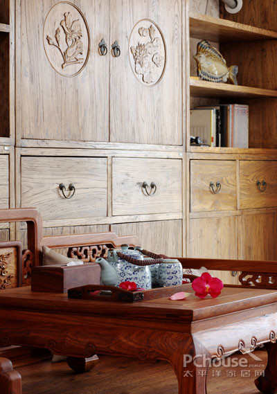 作为一个中式风格的书房,要承载的元素太多,如果都想表达出来,这个书房就没法进展下去了。为了设计能顺利进行,设计师提出了“形散神不散”的设计理念,王鲲欣然采纳。