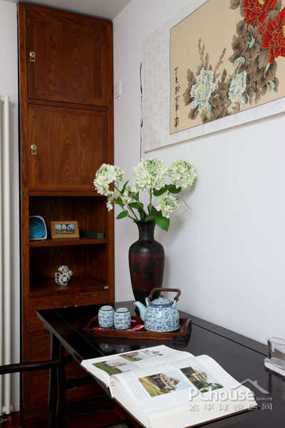 而混搭其实在整个房子随处可见,卧室欧式的吊灯和中式的家具,大花纹的地毯和简洁的白色靠包,这些看似小小的东西,在家居搭配中起了大大的作用。房间的色彩调节,气氛调动,跳跃的色彩有着神奇的效果。