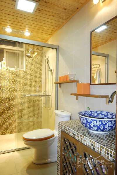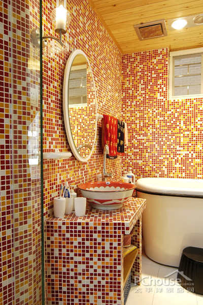 卫浴间墙壁全部运用马赛克,唤醒童年的记忆,也增添了不少趣味和个性。