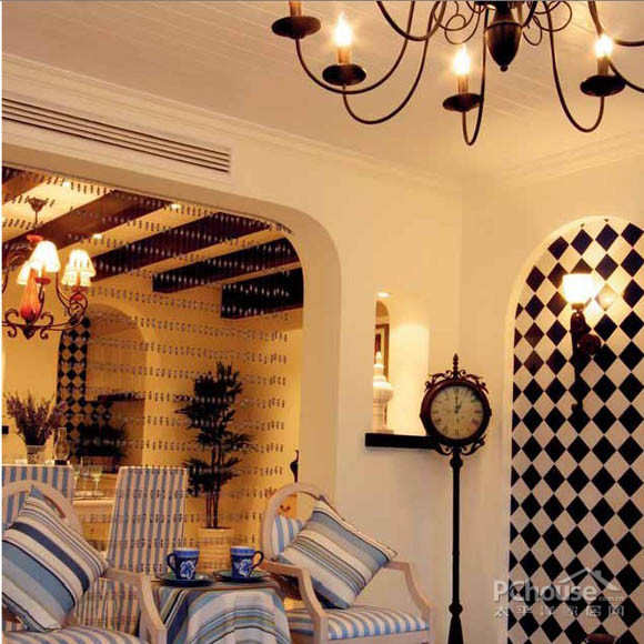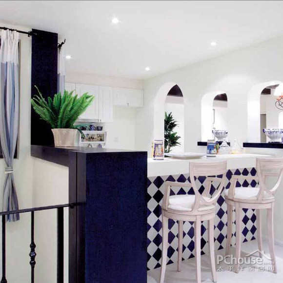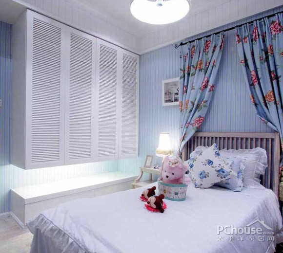【太平洋家居网 设计频道】冷暖结合,运用清新素雅的白与蓝,象征蔚蓝的海岸与白色的沙滩,没有更多的色彩,夸张的修饰,浅浅的具有不用质感和色相的白与蓝条纹,使整个居室充满了视觉的清新感,呈现质朴、唯美、浪漫、慵懒的空间气质,向主人传达着快乐、美好的未来。