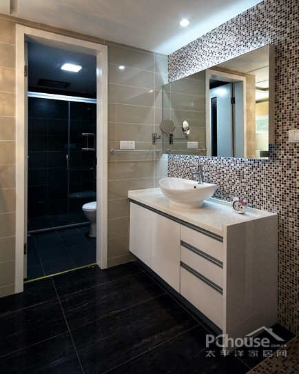 卫浴设计:卫浴位于门厅隔壁,淋浴间与卫生间相合并,建议把干区放在卫浴间门外,即可防潮防湿,有不至于让卫浴间显得过于拥挤。