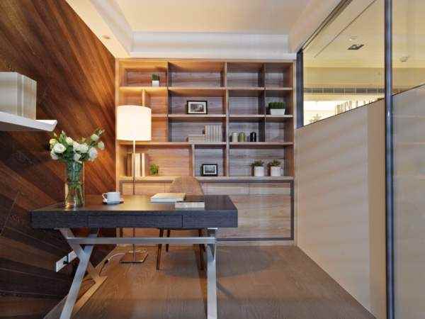层高不高,整面墙的书柜既非常实用,也是一种装饰。