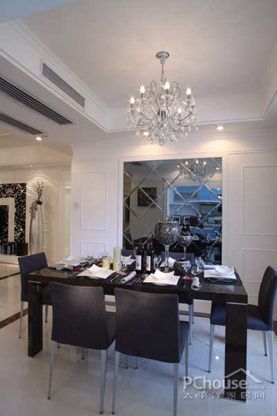 新古典风格的色彩就是在深沉中略有夸张,或是浮华的红,或是幽沉的黑或咖啡。本案以黑色,咖啡色,银色三种相近色为主要装饰,墙壁只是略做修饰,并未有炫目壁纸的过分“化妆”,所以还保持着原本的清新淡雅。整个空间拥有高雅的氛围和小资的享受。