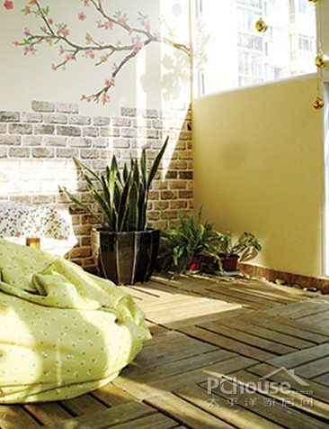 阳台:可摆上一些花花曹操,铺设栏栅地板,不用太过精致,能够增加居室内的田园悠闲风情。