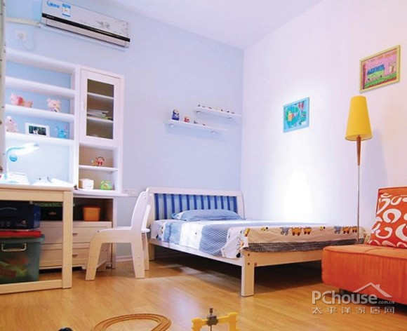 儿童房:为了让空间更大,设计师没有设计吊顶只走石膏线,整体风格简约中带点田园这样感觉更温馨,小孩房相对于主卧的色彩更丰富一些。