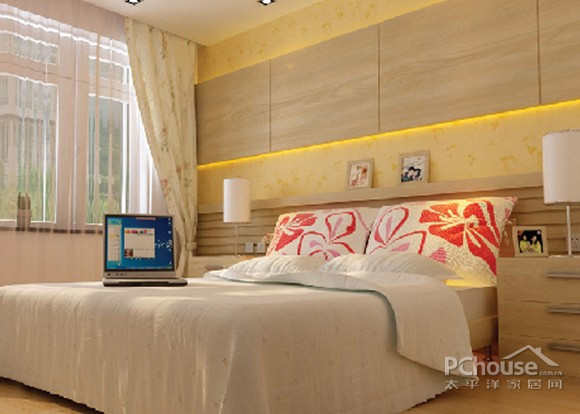 主卧:床头的设计采用木质材料,呼应了田园风格,色彩还是以素雅的为主,充分满足了网友的需求。