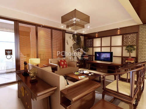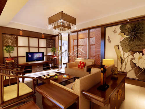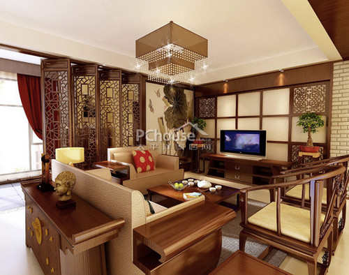 客厅中式灯饰营造出一种浪漫的氛围,在灯的映衬下,给客人惊艳的感觉。将中式元素绘制成一副美丽画面。