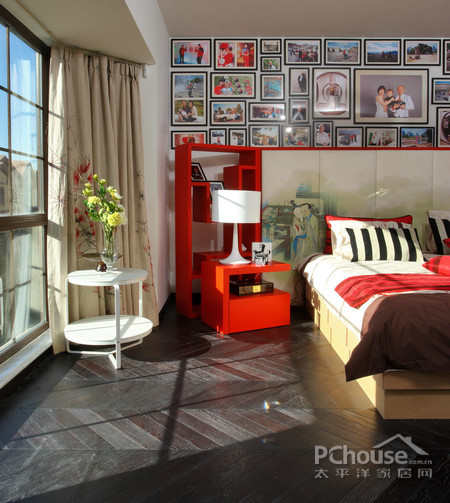 卧室飘窗的位置利用的非常合理,而且非常实用,艺术品的陈设给人的眼睛和心灵带来舒畅的休息环境。