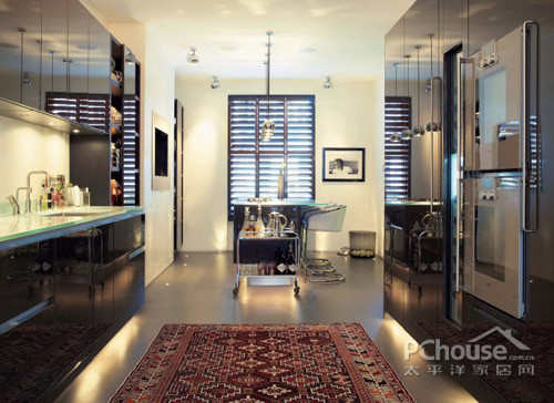 【太平洋家居网 设计频道】Kelly Hoppen的家是乔治王时代风格的联排别墅经典之作,占地约232平方米,黑白标志主题风格贯穿其中——白色墙面、黑色木质滑门、黑色地板和灰色带孔树脂地板。