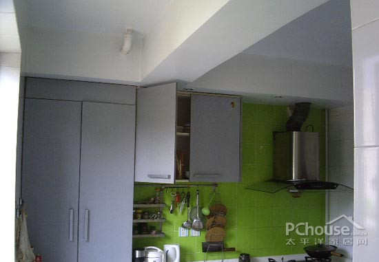 厨房改造:厨房的180度旋转自由门彰显风格的同时让厨房空间与餐厅空间做了很好的过渡和相溶。