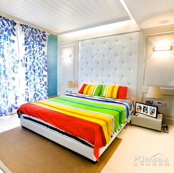 灯饰、床品等在颜色上互相呼应,让卧室体现出一脉相承的融合。(案例来源:国广一叶装饰)
