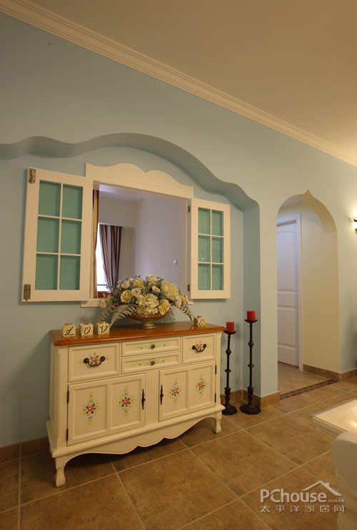 右边拱门是通向阳台的门 ,在它对面有 一扇对称的门,不过那个是柜门,呵呵!