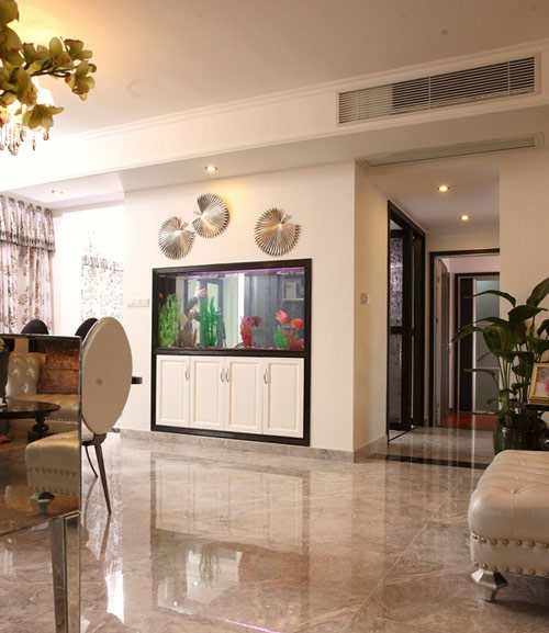 床头柜上的白色羽毛台灯,可以进一步将尊贵表现出来,同时诠释出了新古典的唯美与轻盈。位于床这一边的电视,黑色的电视机,白色的电视柜,很简约,没有不必要的装饰。