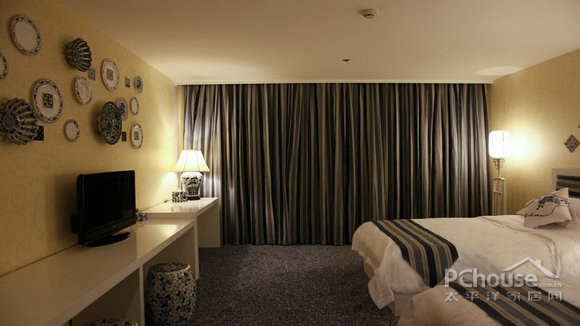 青花瓷、水墨、是最受欢迎的主题,中国风的静谧和优雅,在房间里得以充分的体现,青花瓷片被古典花纹的壁纸衬托的更加清丽,宫灯散发的柔和灯光、让房间轻轻的弥漫在优雅的氛围中。