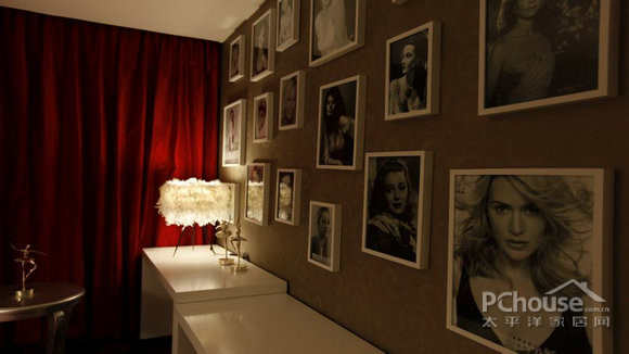 以电影为主题的房间,占了一个楼层,妖媚的影后房、霸气的影帝房、而且还可以欣赏到各届影帝和影后的影片。