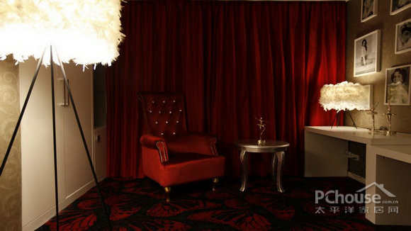 影后房大红天鹅绒的窗帘和奢华沙发,你也可以享受次被万千宠爱于一身的影后级待遇。