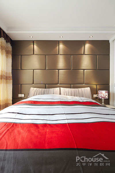 主卧的设计大气奢华,采用金属质感的背景墙衬托出主人的审美和品位。