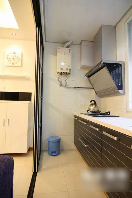 空间狭窄的厨房可以用麻雀虽少,但五脏区全,洁白的大冰箱,实用美观的欧派橱柜都给了主人们大展厨艺的机会。