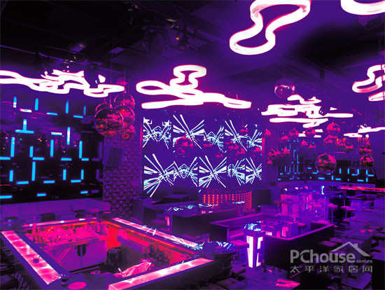 大型水晶灯和连在一起的闪耀霓虹灯,完美打造出都市繁华的景象。