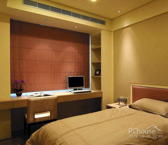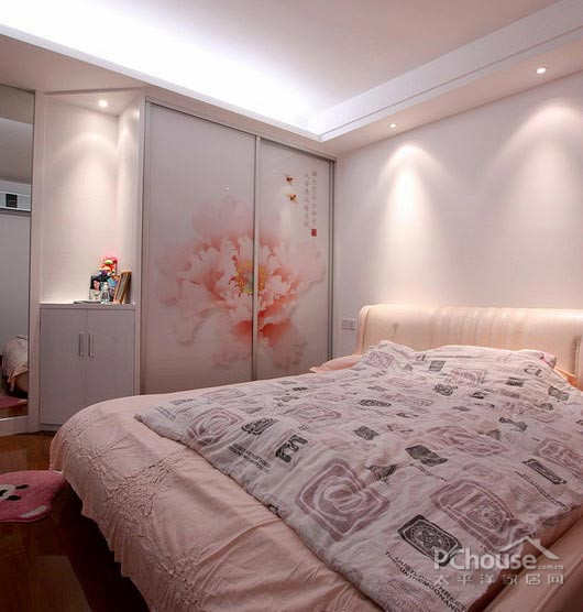 卧室设计:卧室不用大动干戈,实用即可,简单的墙纸和灯光的配合,就可以有温馨的感觉。