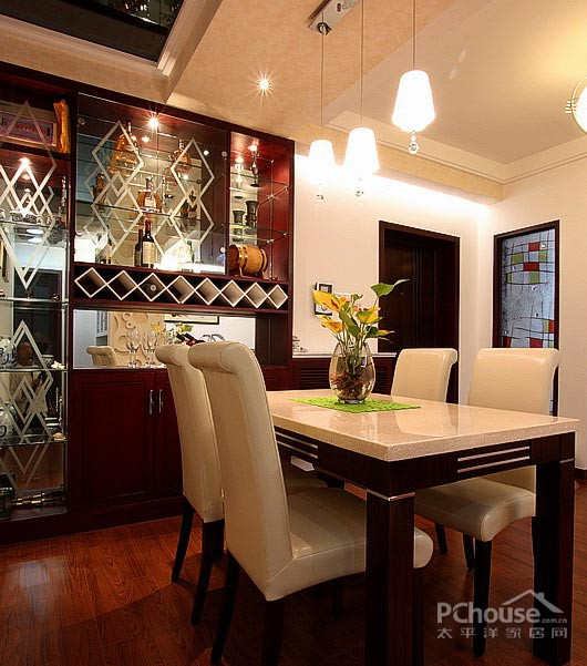 酒柜参考:嵌入式酒柜可以收纳的同时,还是一个很不错的餐厅背景。