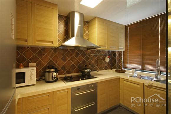 厨房参考:厨房建议采用L型或者一字型的设计,现代风可以是烤漆亮光的橱柜,田园复古一点的仿木纹的橱柜,感觉很有味道,推荐这一款淡淡的美式田园风格厨房设计。
