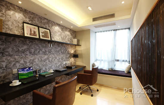 书房是业主平时工作的地方,视线明亮,与卧室相同,没有累赘的设计。简单又不单调,带着自己的风格。窗前的小平台视线明亮,舒适悠闲,适合看书。