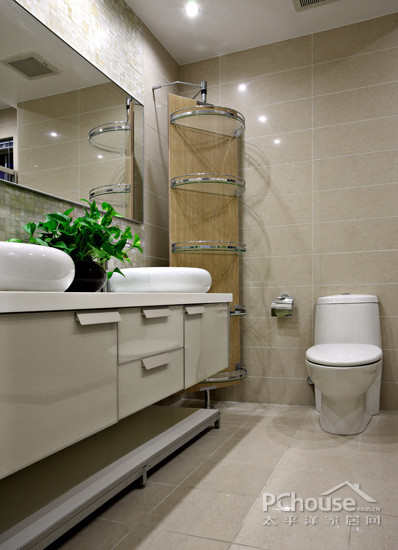 卫生间温馨地设计了放置洗浴用品的小搁板,小设计也非常贴心。