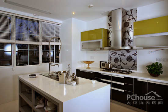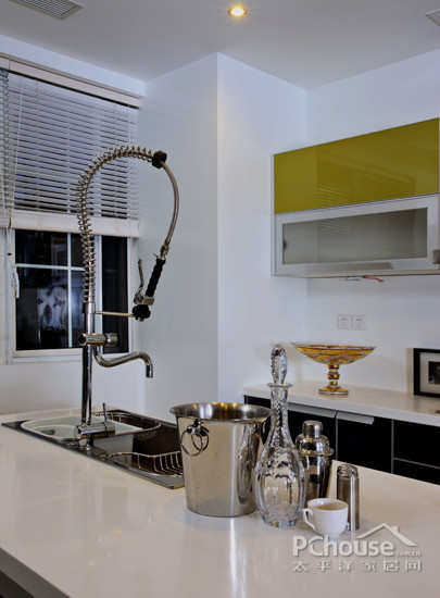 现代夫妻有很多应酬,在家做饭的时间不多。白色料理台和白色的橱柜台面,让厨房整体感觉明亮大气。