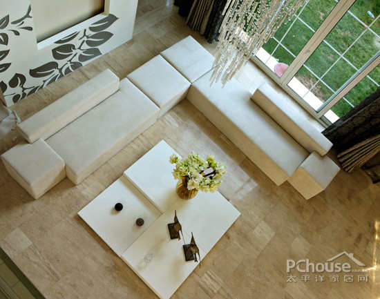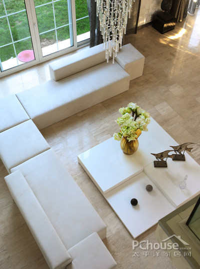 第二个,这个房子他要求所有的设计尽量定制,所以大家会看到在整个空间里很多沙发、灯具都是单独设计的。