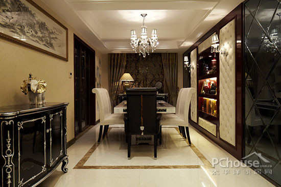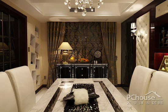 餐厅白色餐桌椅在奢华与优雅的风格上增添了一丝现代感,在这样环境下,已经不单纯是用餐的场所,更是我们对气氛的追求,更代表了一种生活的品位与格调。