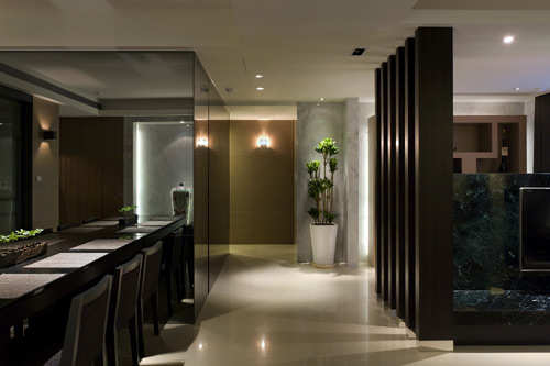 简约现代、内敛大器是这个设计案的基本风格主轴,大量的石材、玻璃使用,营造出精品饭店式的精致优雅质感,再以木皮、木条的温润特性协调中和,稀释过于冰冷的氛围,适当的比例拿捏,构筑经典大方、不落俗套的住家美学。