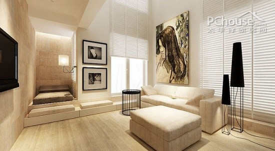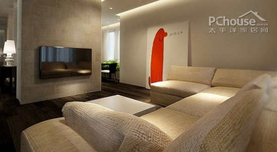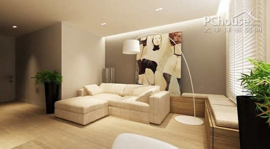 卧室的整体风格非常简约清爽。浅灰色的门、墙,白色的卧室用品以及米黄色的地面,整个空间以浅色调为主,悠然舒心。床头墙面的设计业颇具艺术气质,为整个宁静的空间增添一丝韵味。