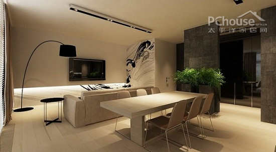 或者也可以把餐桌直接设置在客厅。在这个空间中,餐桌椅放置在沙发的后方,不会影响客厅的整体格局。同时,餐桌椅在就餐时间之外,也可当做休闲会客的场所。茶余饭后,谈天说地实乃温馨的家庭生活!