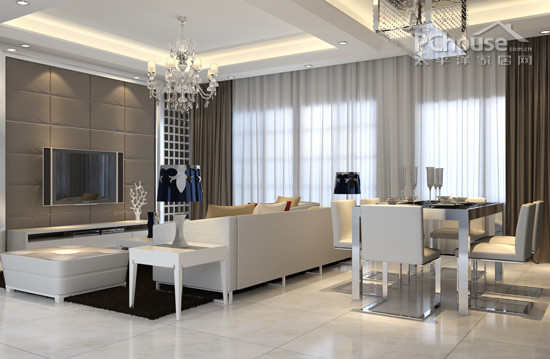 客厅、餐厅设计:客餐厅的分隔可用软处理,比如天花分隔,收纳柜分隔等等。会使得空间更加的开放,小户型的压抑感瞬间减少。