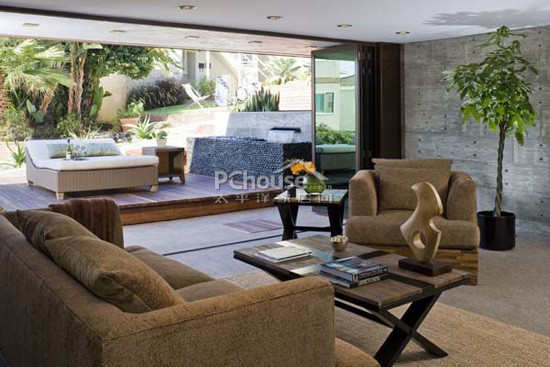 一楼的其中一个房间占据着庭院,带着一丝奢华的气息,院子里充满着加利福利亚州的新鲜空气。