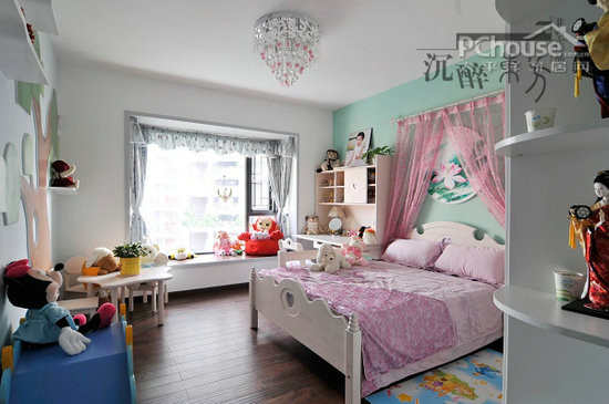 小孩就摆脱房间中国风的设计,床头的布帘设计就让整个房间瞬间变成公主房。
