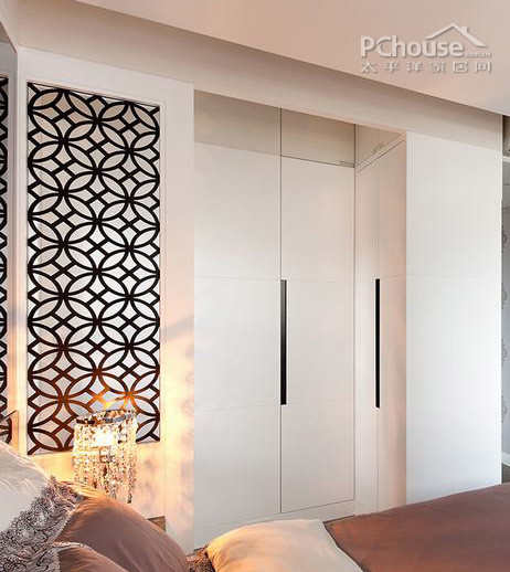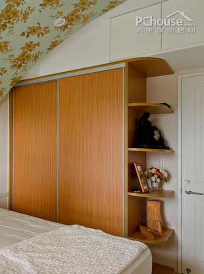 次卧设计:设计师利用次卧空余的储物间,改造成一个三面的衣帽间,收纳设计可是满满的噢。